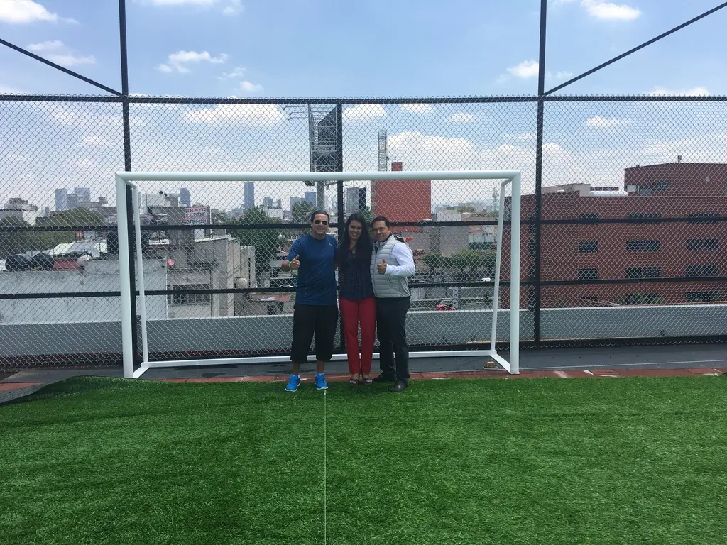 Ese mismo año desarrollamos nuestra primera cancha de fútbol 6, ubicada en la azotea de un centro comercial en la Ciudad de México, marcando el inicio de un proyecto con visión innovadora.